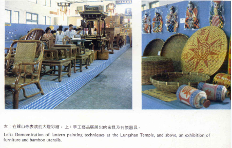 這其中最引人注目的是龍山寺舉行的民俗技藝展。許多懷有絕技的民間藝人,在主辦單位的再三敦請下,雲集在龍山古寺表演拿手的絕活。