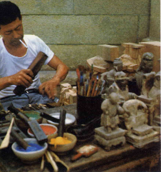 鹿港的大小寺廟有五十多座,所以雕刻佛像的行業也很興盛。