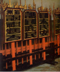 在聚英社門前橫楣上題著「御前清客早蜚聲」。八十歲的王昆山社長說:「御前清曲」是出自清朝康熙皇帝的御筆。當康熙六十大壽時,安溪大學士李文貞羅致泉州附近五大樂手進京,舉行御前演奏會。康熙皇帝聞之大喜,驚為天下絕響,當場取支洞簫與之合奏,並御賜宮燈和彩傘以為嘉許。從此,宮燈與彩傘成為南管樂團的光榮標誌,而洞簫手也被尊為首席樂手。