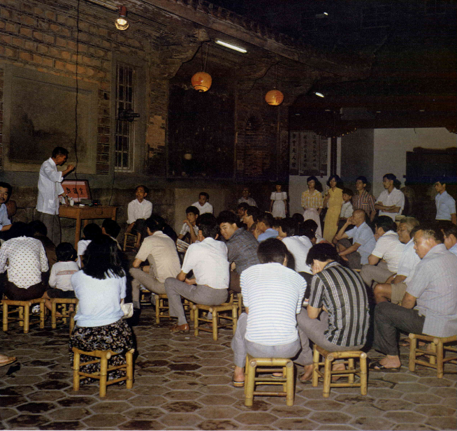 在他們年輕的時候,電視還沒有出現。於是,在晚風習習,清涼如水的夏夜,搬張凳子,圍坐在龍山寺後殿廣場中聽施旦講古,便成為平淡生活中極大的點綴與調劑。