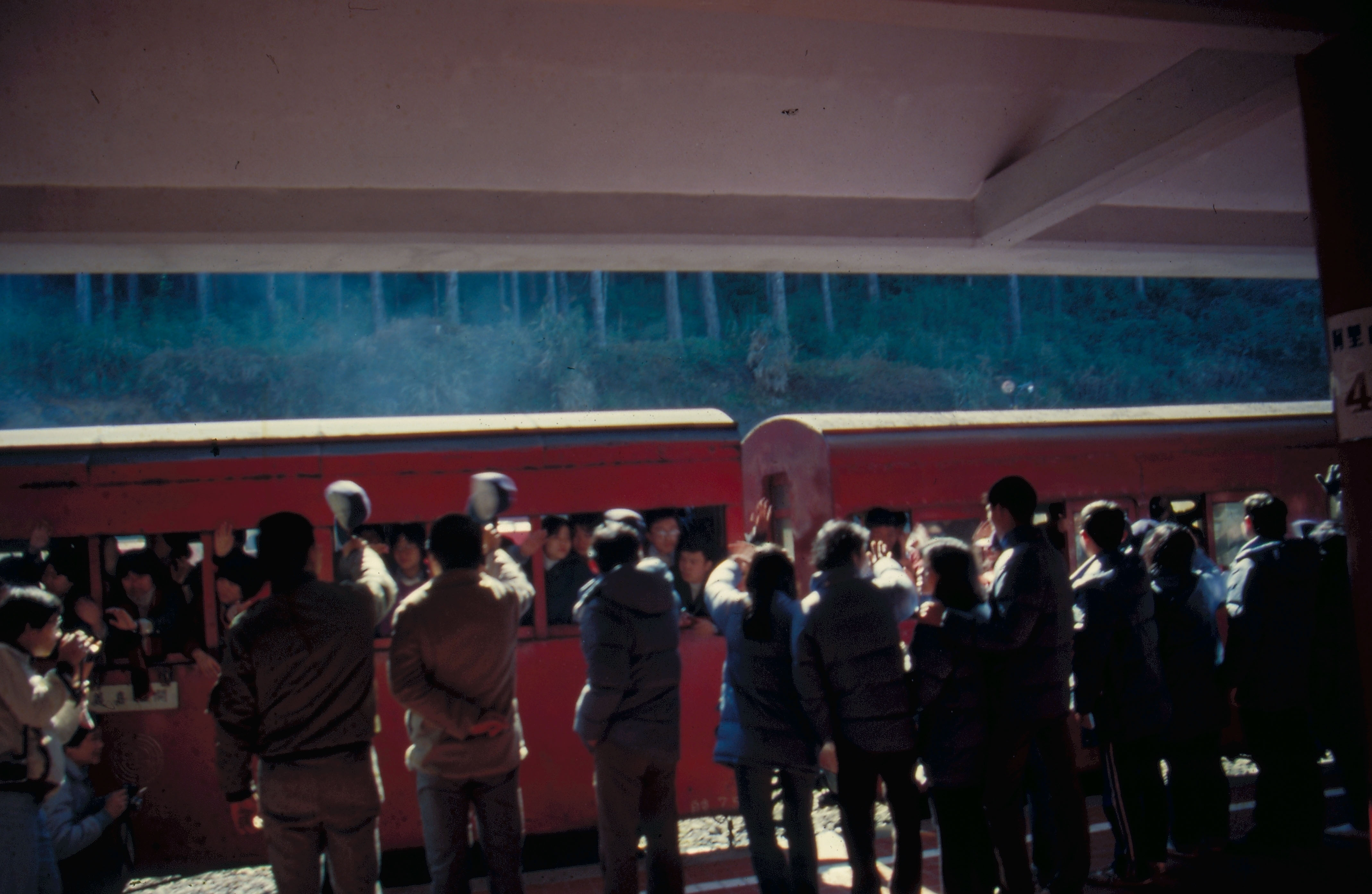 第二天早上,青年學生結束旅程,搭火車要下山時,輔導員在車廂前和他們一一道別。此行下山,各自東西,不知何時能再相聚?當此時刻,又有人暗自飲泣起來,輔導員也不由得泣不成聲。這種真情流露的場面,見者無不深受感動。火車開動了,月臺上的、火車裏的人都不斷揮手,高聲道再見。輔導員跟著車行跑了一段,車愈行愈遠,終至不見蹤影。但這一份真摯的感情,相信與阿里山的景、物、人一起,將長留他們心中,永難忘懷。