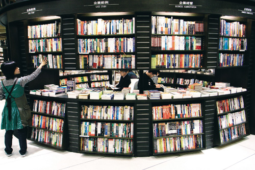 (左、下)台灣每萬人的新書種數高居世界第二,既創造了自由多元的讀書環境,卻也種下出版產業成長瓶頸的遠因。圖為誠品書店一景。
