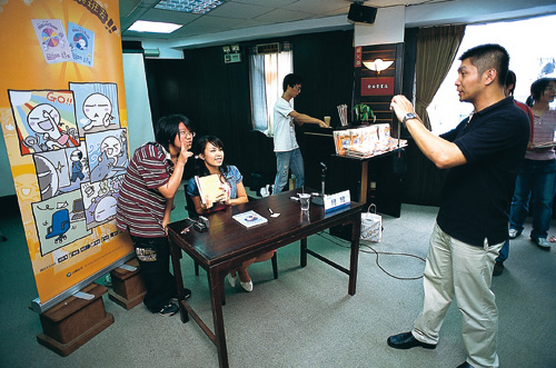 從網路發掘新作家已是目前出版業常見的模式,顯示了出版業與網路共生的一面。圖為從部落格發跡的圖文作家彎彎與讀者合影。