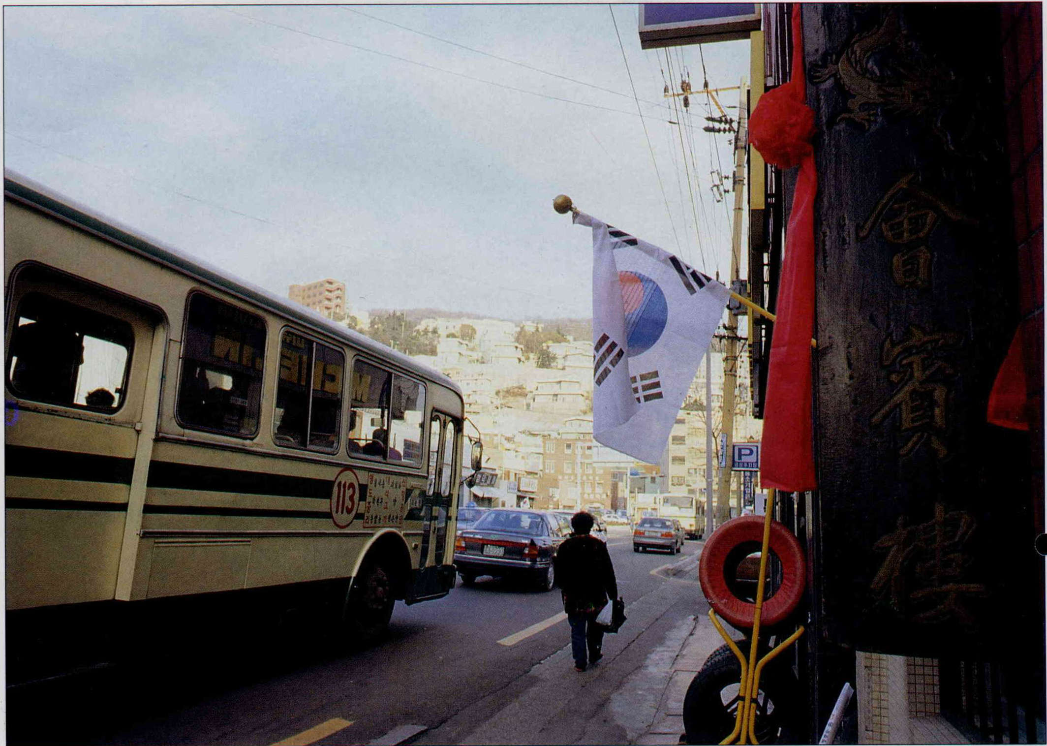 打開報紙,以往「中華民國」的稱呼已改為「台灣」;而村子下草梁一端俗稱「德克薩斯」的酒吧街,現在以蘇聯和大陸船員居多;中國館子也都掛出了中俄文相對照的菜單。村子裡的信箱上已可發現大陸寄來的「山東僑報」,還有遠在四百多公里外的漢城華僑小學發生過降旗事件……。