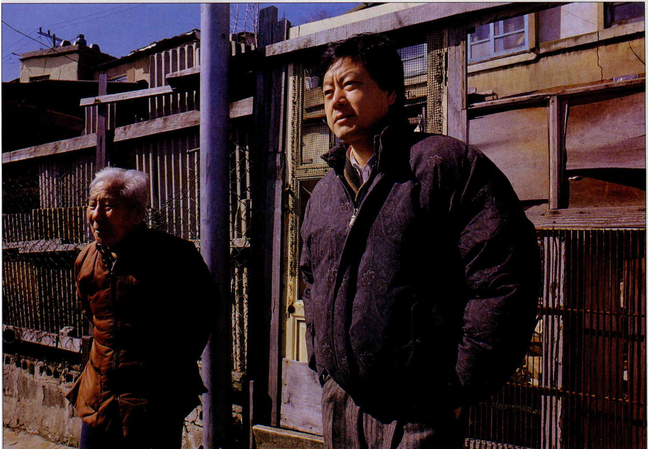 七十四歲的村長韓占林解釋,「這裡過去有個沒文兒的規定,房子租賣只能轉給中國人,只是現在娶韓國太太的多了,才有人說韓國話。」目前住下的一半是在中國餐館工作的跑堂或廚子,其次是兒女都往外移民了的老人,還有圖交通方便的華僑學校老師。