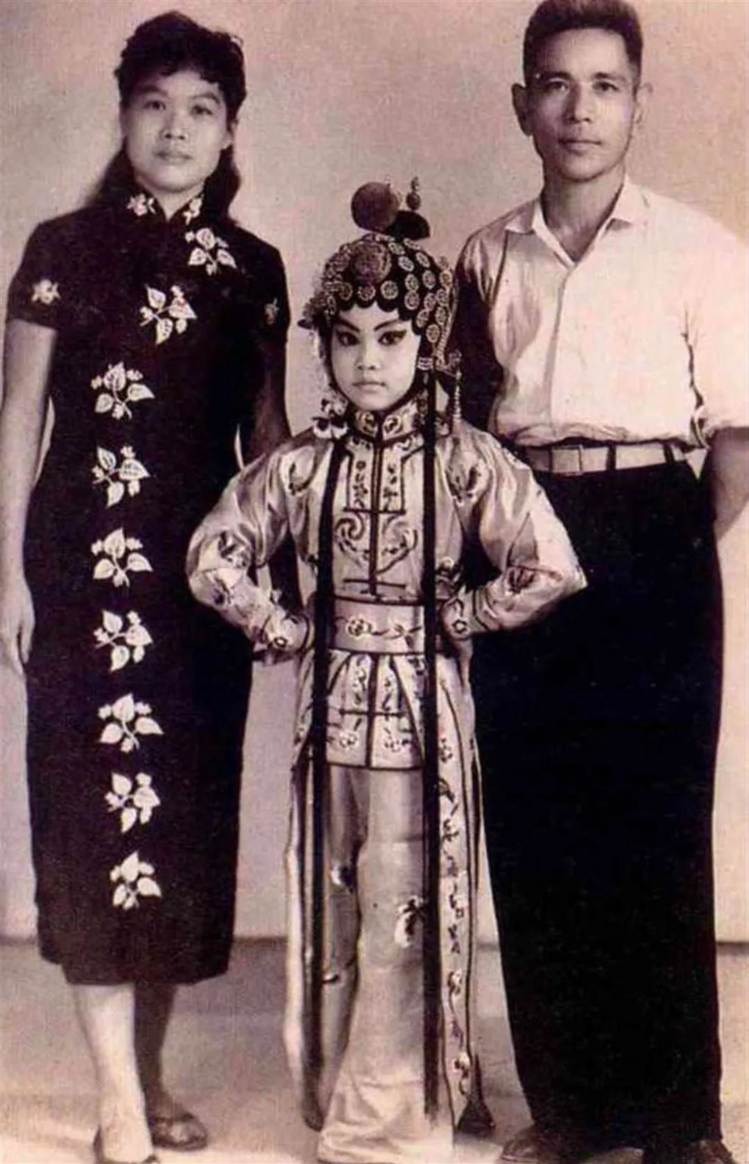 十歲的王海玲,擺足架勢,和父母合照。(王海玲提供)(王海玲提供)