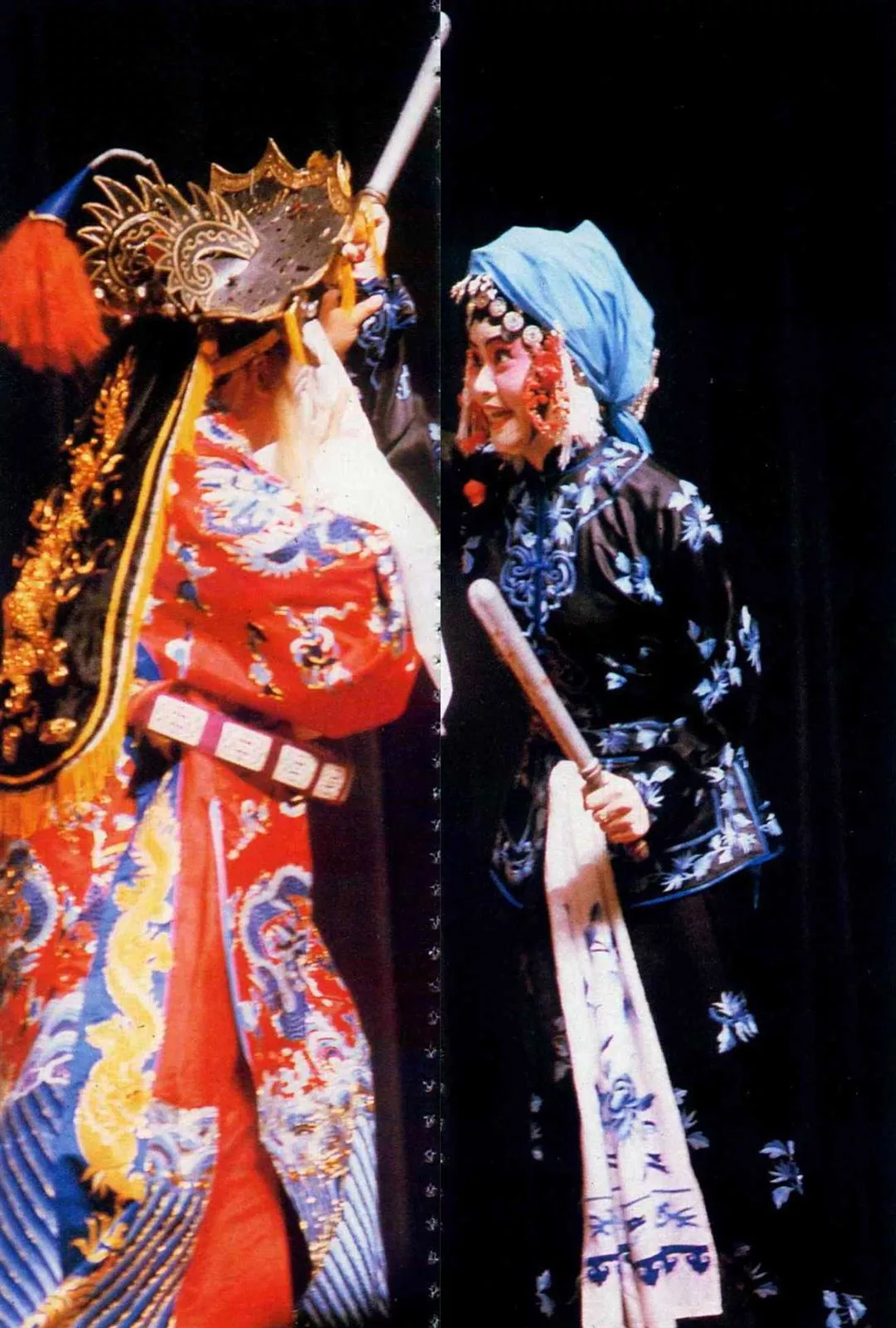 (右)王海玲手持棍棒,橫眉豎目,好一副潑辣相。(張良綱)