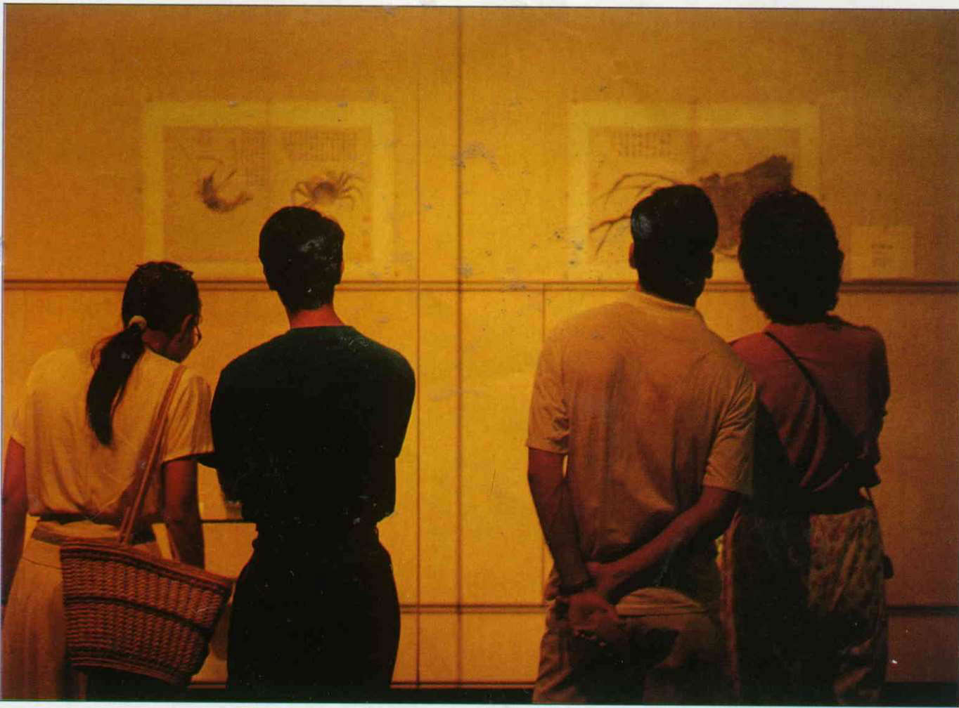 一個九月初秋的傍晚,當故宮博物院樓前大鼎的影子拉得又長又斜,最後一位訪客也離去,安全管理室的清點員開始一一巡察各展覽室。二樓的「赴美參展文物行前特展」內,包括明孝宗坐像圖、唐寅的函關雪齋、成化年的五彩蓮盤、雞缸杯、青花盌也照例在檢視無誤後,由清點員關上大門、貼上封條。經過這一天的古今交流後,古物、今人各自沉靜。