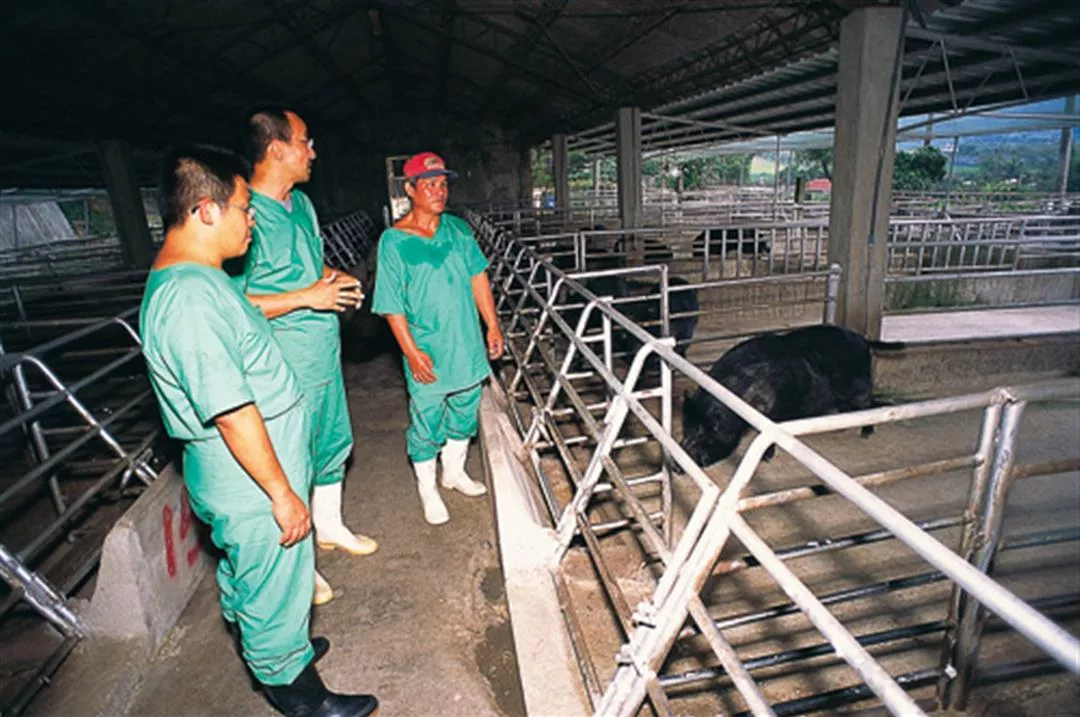 每日下午4點左右,台東種畜繁殖場畜產科技系主任朱賢斌(中)率職員巡視豬舍,確認保種蘭嶼豬們得到滿意的「客房服務」。