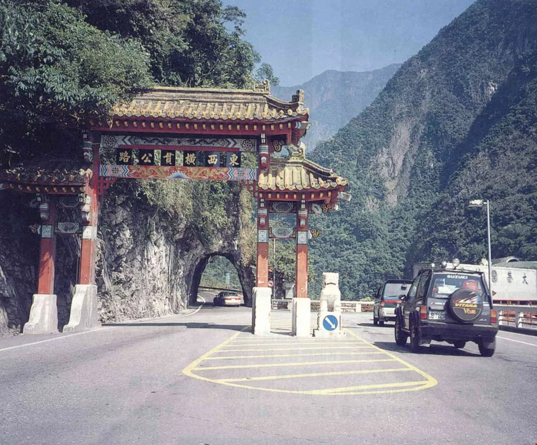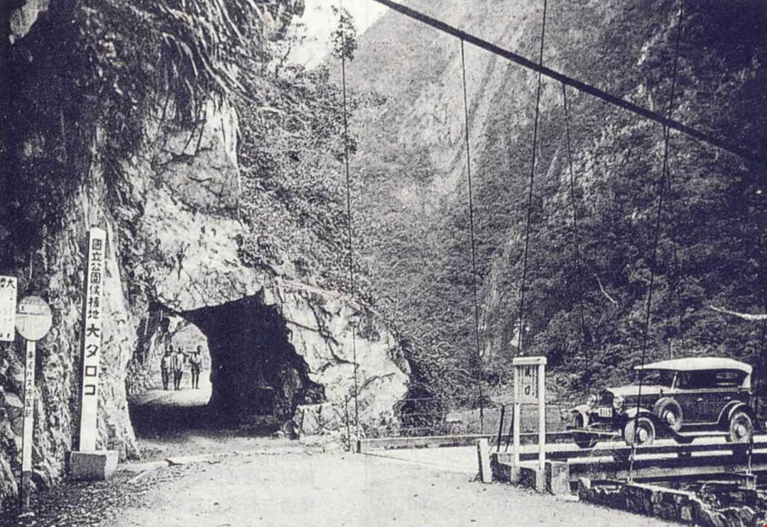 日據時代入選為台灣八景之一的太魯閣峽口。吊橋、山洞、紀念碑是太魯閣的代表地景。(李瑞宗提供。(邱瑞金)