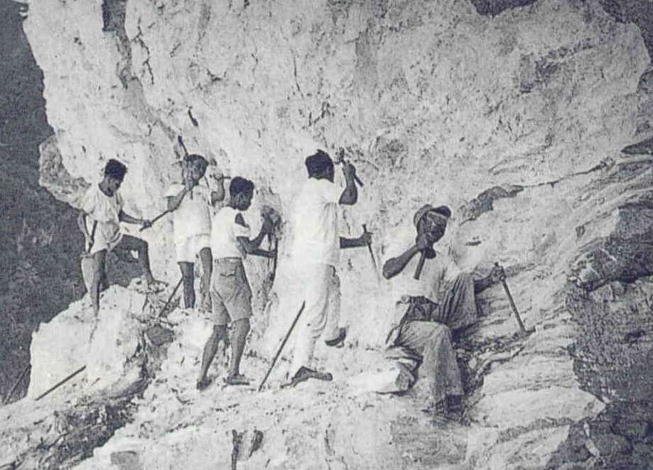 由於地質脆弱無法使用大型機械開拓挖掘,中橫大部分工程全是由人力一鍬一鏟,一斧一鑿完成。 (太魯閣國家公園管理處提供)(太魯閣國家公園管理處提供)