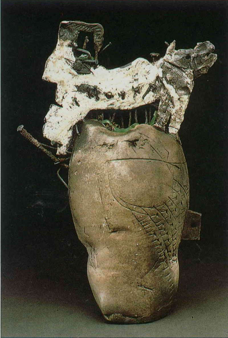 (上)出發去拯救那張曾發動了千艘大船的面顏一九八七56×33×23cm陶、現成金屬(周邦玲提供)
