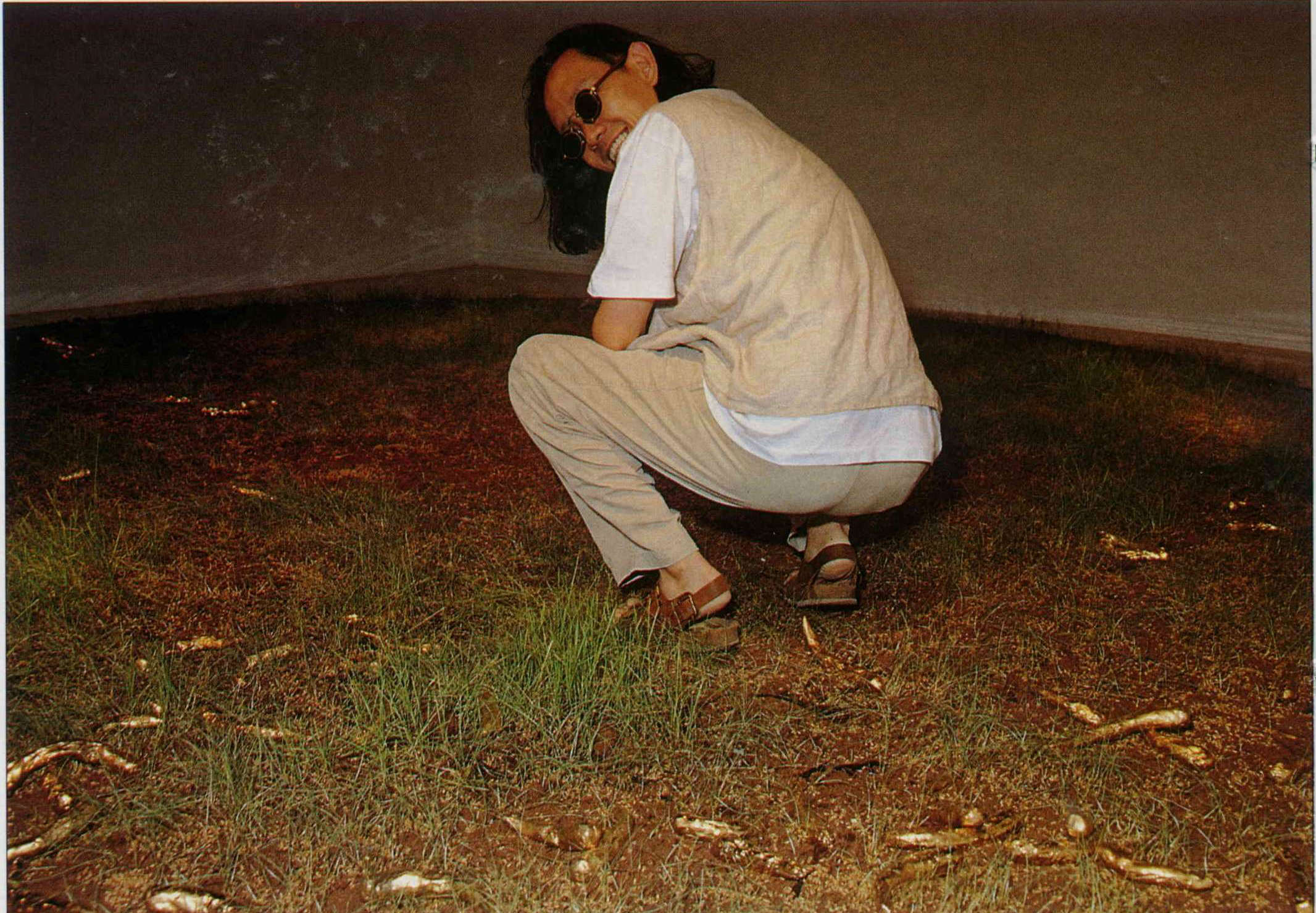 范姜明道最近新作「造景」。思考在文明都市中,不論景觀上或內心中的自然都必須被刻意追求,經一點一滴播種為養分的大便會被炒作成有價的「金大便」?或是在小麥草(大自然)吸收下,被覆蓋而消失?