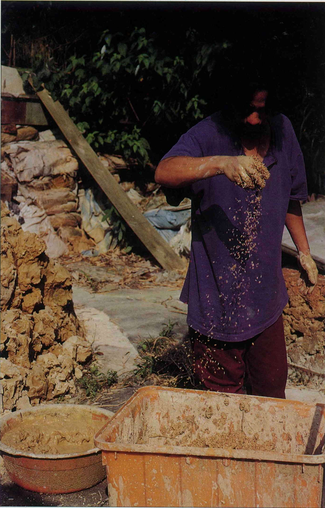 對蕭榮慶而言,不論是狗屎、貓屎,一把竹葉或是一把米糠,信手取來,無不可是創作材料。