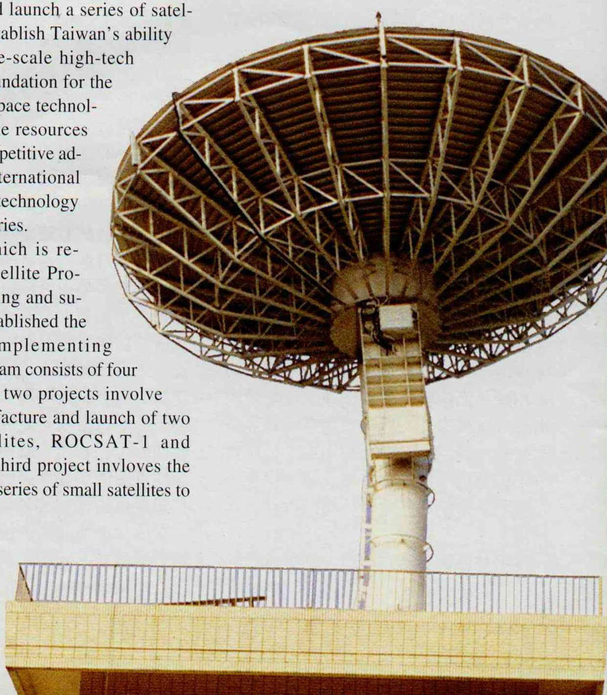 在人造衛星計畫之前,位於中壢的中央大學已成立了遙測中心地面站,有接收、處理衛星資料的能力。將來,它也是華衛一號的地面站之一。(張良綱攝)(張良綱攝)