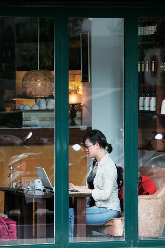 除了書店,許多強調個性品味的咖啡館也喜歡聚集在溫羅汀。圖為民眾在咖啡店上網工作、品啜咖啡的情景。