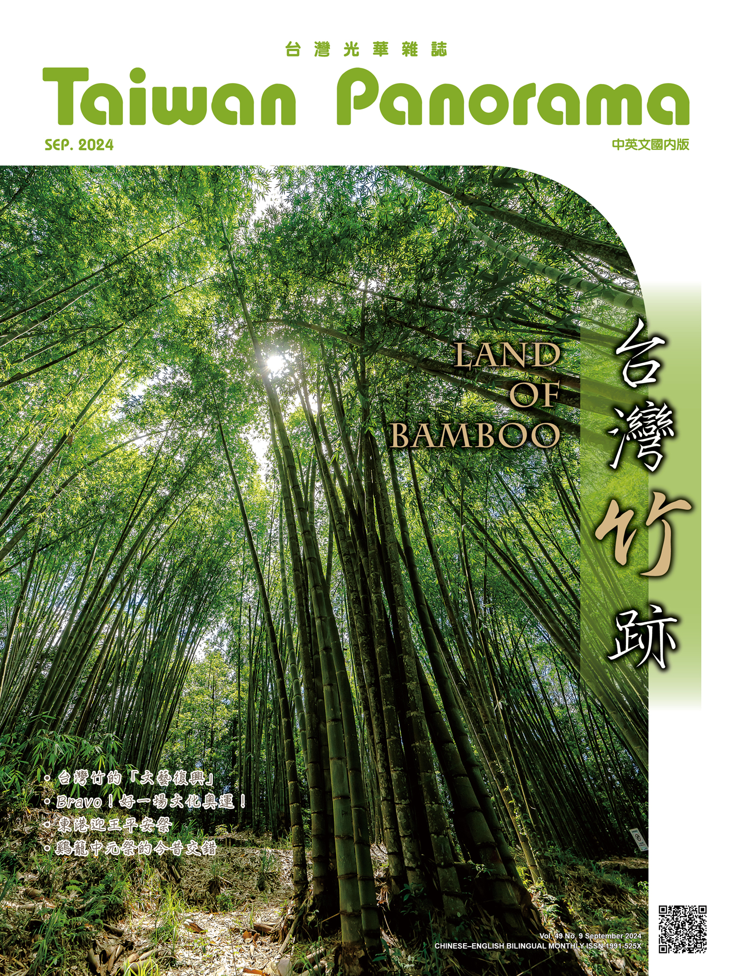 隨著時代的演進,台灣「竹」的應用已從生活器具朝向工藝領域發展,而今(2024)年適逢台灣主辦「世界竹博覽會」(涵蓋新竹、南投、雲林、嘉義、花蓮五大展區),《台灣光華》以此話題延伸,報導「竹、筍文化與生活」、「百變竹藝」、「草嶺石壁的竹林療癒力」及「原住民與竹構」等主題,探索台灣竹資源的無限可能,並向國際呈現出台灣竹文化及產業能量。