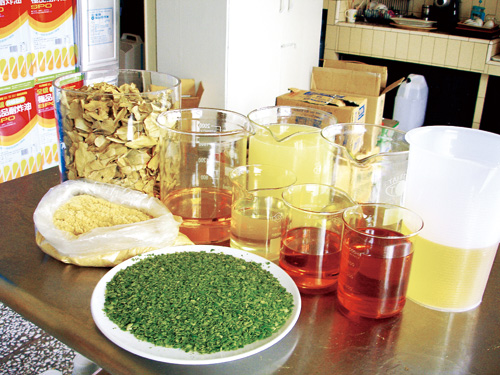 「艾草入皂不特別,但沒有人做得比我好,」阿原說,艾草不同部位要用不同的萃取方法──根部要用酒泡、莖以熱水熬煮、葉則放在日光下曝曬、嫩芽部分就得要用冷凍乾燥萃取法──才能獲取其養分。而艾草最好的朋友是綠茶,因為綠茶中的兒茶素和花青素能催出艾草中的抗氧化成分。此一加入綠茶、馬鞭草、香茅…等「好朋友」的複方艾草皂,可以對付濕疹、癬癢等煩人的皮膚疾病。