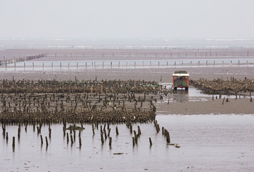 從大城北返的路上,遠望綿延的泥灘地,排排蚵架與農夫農婦拎著串串牡蠣的身影,是一幅恬靜的漁唱;不遠處高架公路上呼嘯奔馳的大貨車,則訴說著工業文明的利與益。人們究竟該如何選擇?又何時才能學會與自然相容共存?