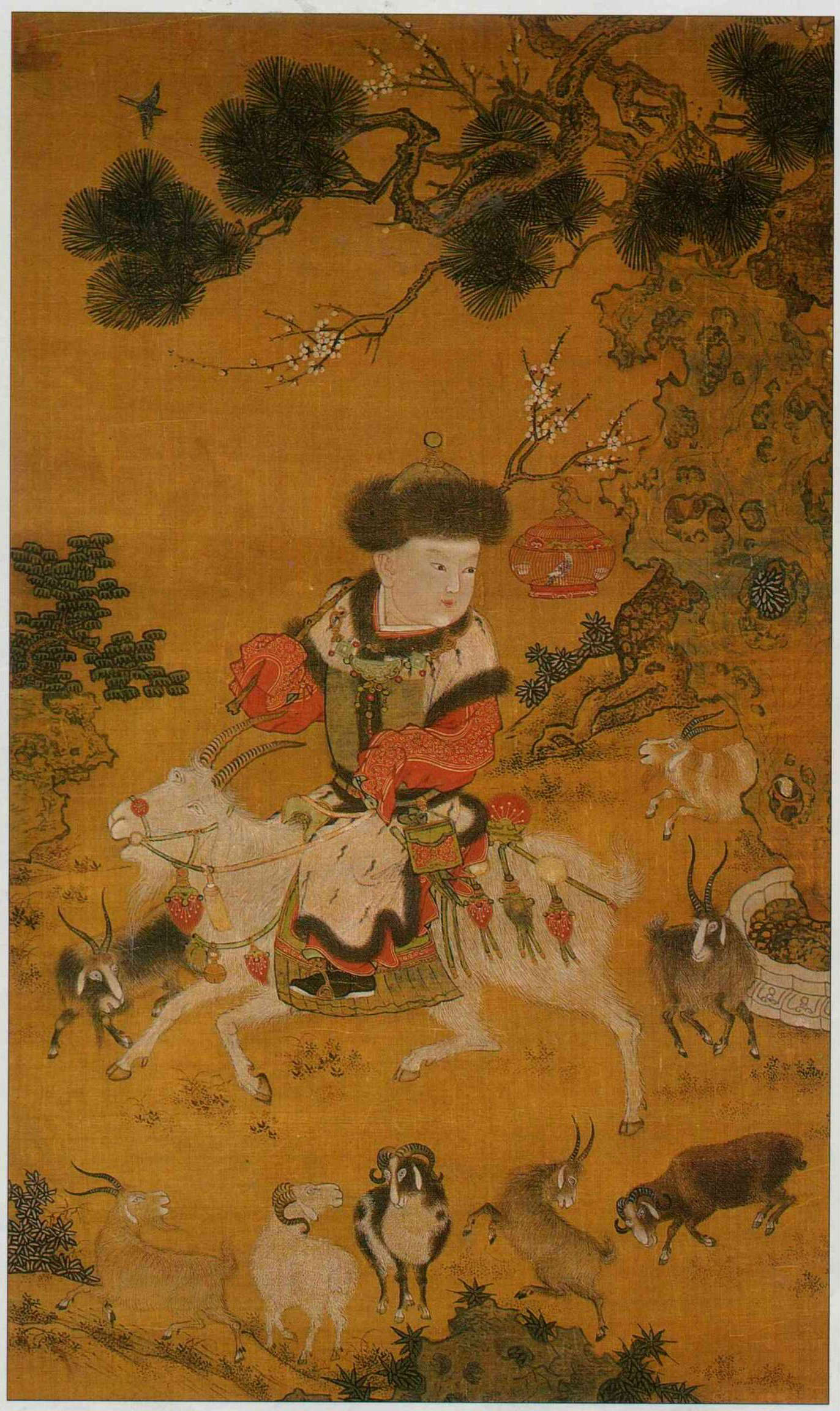 元人戲嬰圖中,九隻羊意謂九陽消寒、九陽啟泰,是幅吉祥畫。(故宮博物院提供)