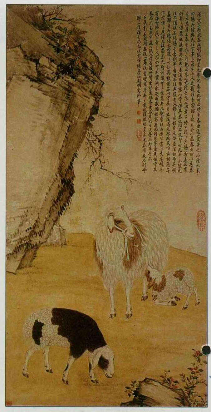 中國歷代出土文器中,許多陶瓷、玉器都以樸厚的羊形為花紋圖案。尤其藝術成就頗高的殷商時代,許多瓶樽銅器上常以浮雕、立雕的羊為飾。