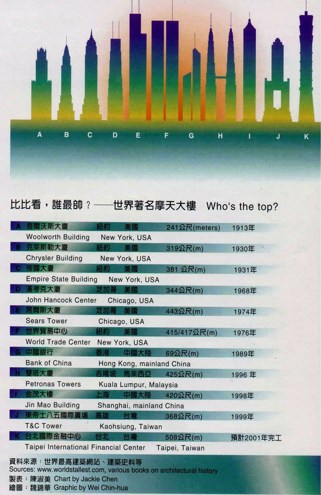 但就像西洋神話故事「永不放棄推石頭上山的弗里西斯」一樣,還是有許多人對征服高度的挑戰念念不忘。隨著全球經濟力的復甦,八○年代,超高層大樓如同點點星光,再度在全世界的天空熠熠生輝,特別是亞洲國家更追逐這股風潮。在馬來西亞的吉隆坡、中國大陸的上海、澳洲墨爾本、巴西聖保羅,一棟棟超過四百公尺的摩天大樓依舊前仆後繼,拔地而起。台灣,也在這風潮中。