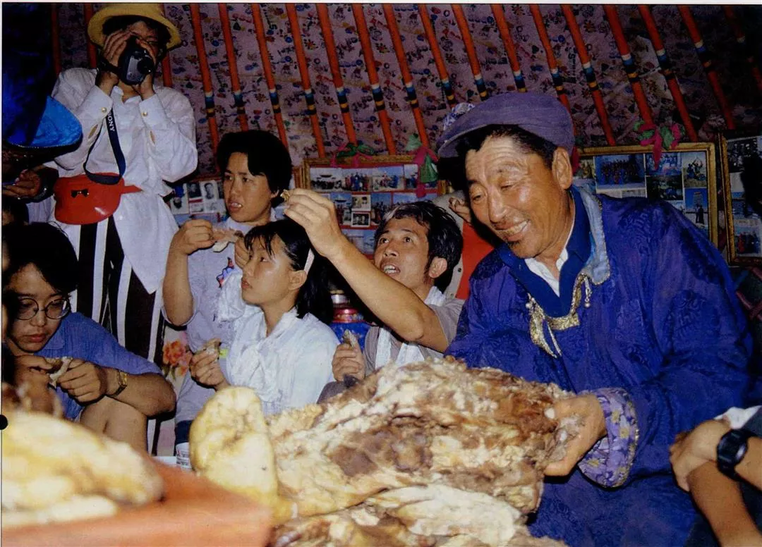蒙古包歡樂夜令人難忘,老阿爸為遠方來的貴客切下全羊大餐的第一刀。