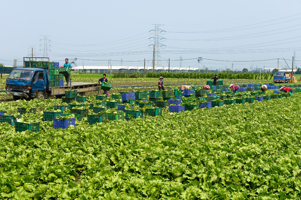 透過管理中心訓練的採收班集中收成萵苣,不但能為老農解決人工不足的困擾,也大幅提高採收效率,並創造更多的就業機會。