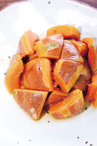 自然農法栽種的碩大秋葵與香甜南瓜,吃進嘴裡滿是清歡。