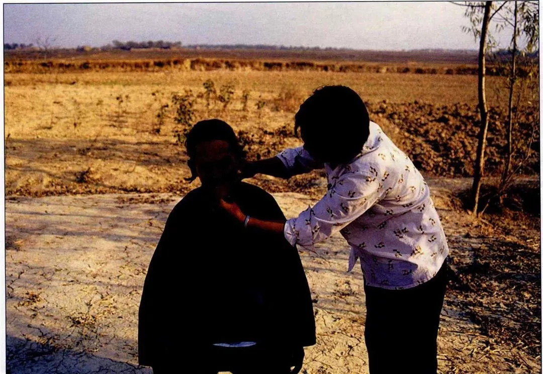 冬陽送暖,孝順的媳婦陪婆婆到院落中曬曬太陽,順便梳頭打理一番。(卜華志攝)(卜華志攝)