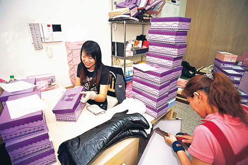 除此之外,她還大方贈送買家可改善新鞋磨腳問題的「後踵貼」等貼心贈品;冬天的靴子則搭配一組「鞋撐」,讓消費者不必擔心長靴收納時會垮下變型;也有一次購足兩雙以上,就加送棒棒糖造型的隨身鏡、名牌化妝品「stila」的彩妝服務券等超值贈品,總之都會讓年輕美眉們覺得物超所值。