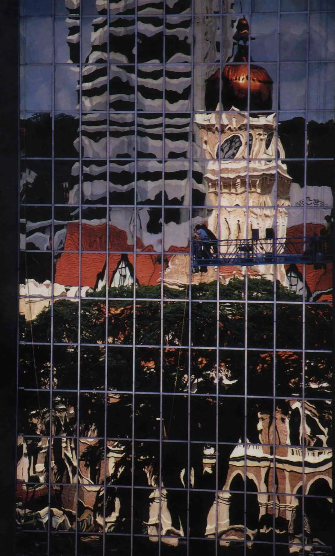 明亮的玻璃帷幕反照出民族風味建築,呈現馬來西亞傳統與現代並容的風貌。