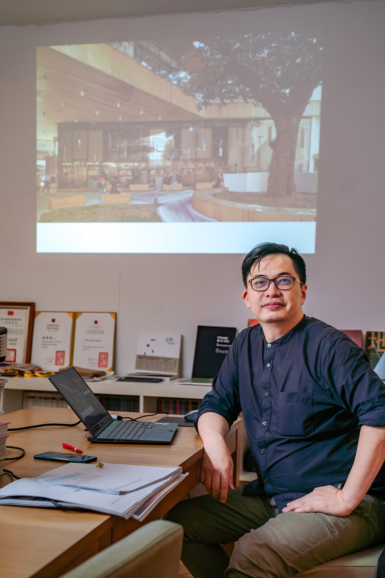 目前正在改造中的龍潭市場也是。盧俊廷特別選用當地具代表性的竹編工藝,以桂竹編織成入口的棚架與飛騰在空中的祥龍竹構,作為動線引導之用;拾級來到市場的二樓,這裡的休憩空間直接以「龍潭印象」來命名,包含了景觀茶亭、親子遊憩區等設施,貫串的竹構深入結合龍潭的丘陵稜線與明潭的水文意象,讓人走一遭市場,就能為龍潭留下初步的印象。