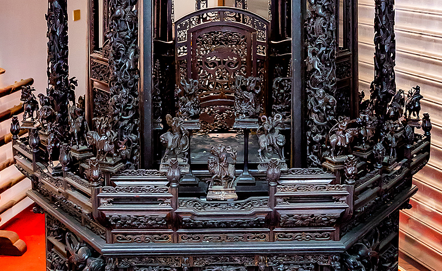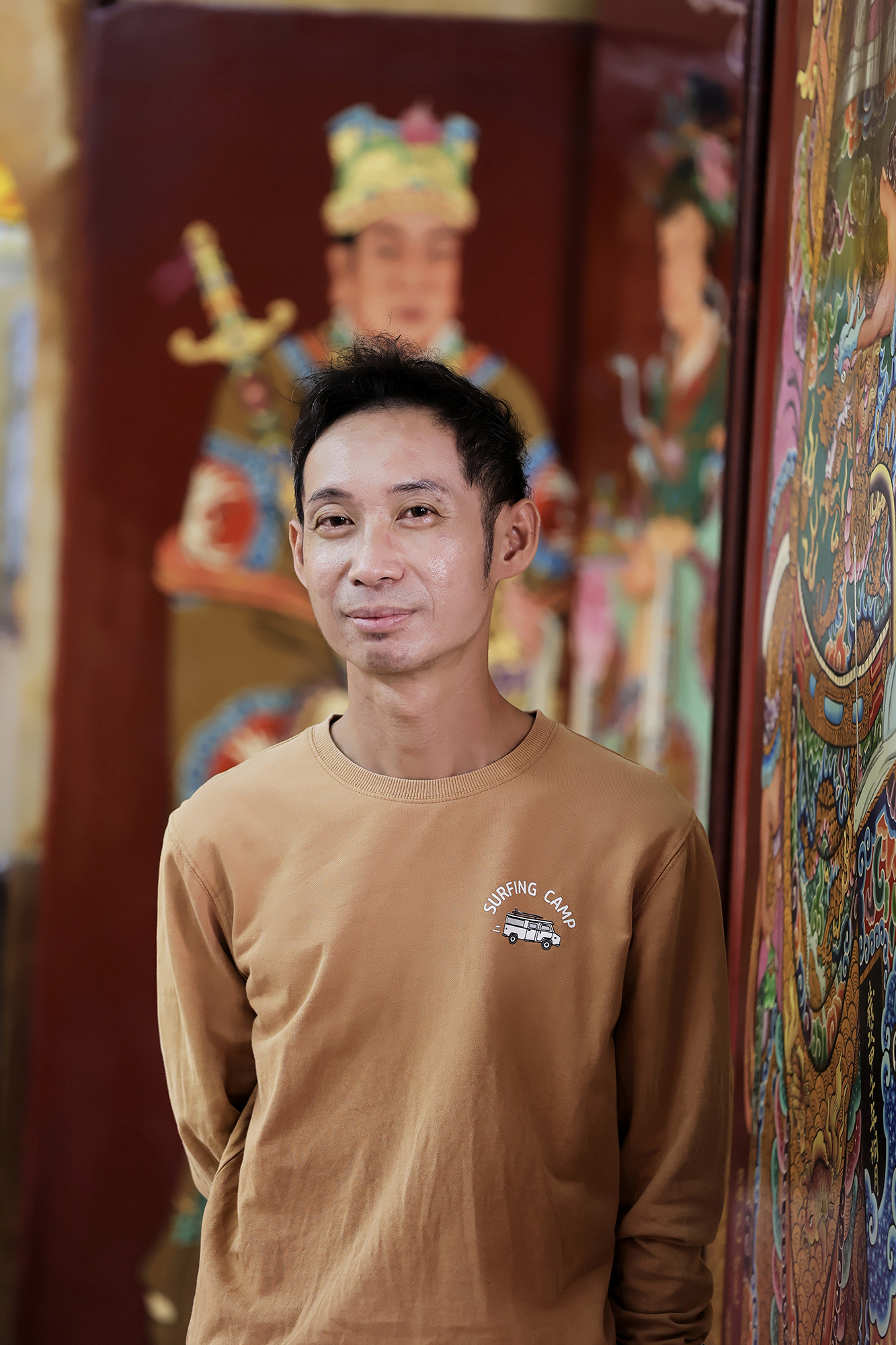 如今坐滿遊客的廟埕,更是承載了他兒時的回憶。抬頭看向廣場旁幾棵茂密彷彿可蔽天的榕樹,鍾麗淇笑說:「這裡的每棵樹我都上去過,廟前的石獅子我和我兒子也都爬過。」他回憶,父母親忙碌做生意時,他常和一群朋友在廟前到處跑,抓鳥、掏鳥巢,玩得不亦樂乎,還會守在廟門口等被留下的結緣供品。