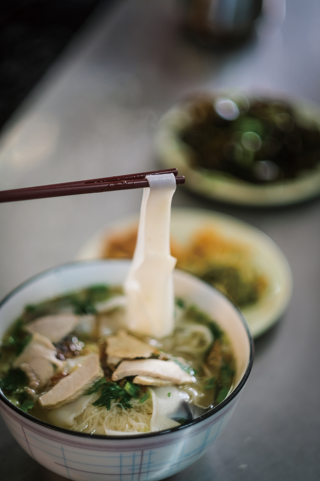 梁記的客家粄條,是老闆梁烘昌每日熬煮的清爽湯頭配上彈牙的粄條,吃一口身心都得到滿足。