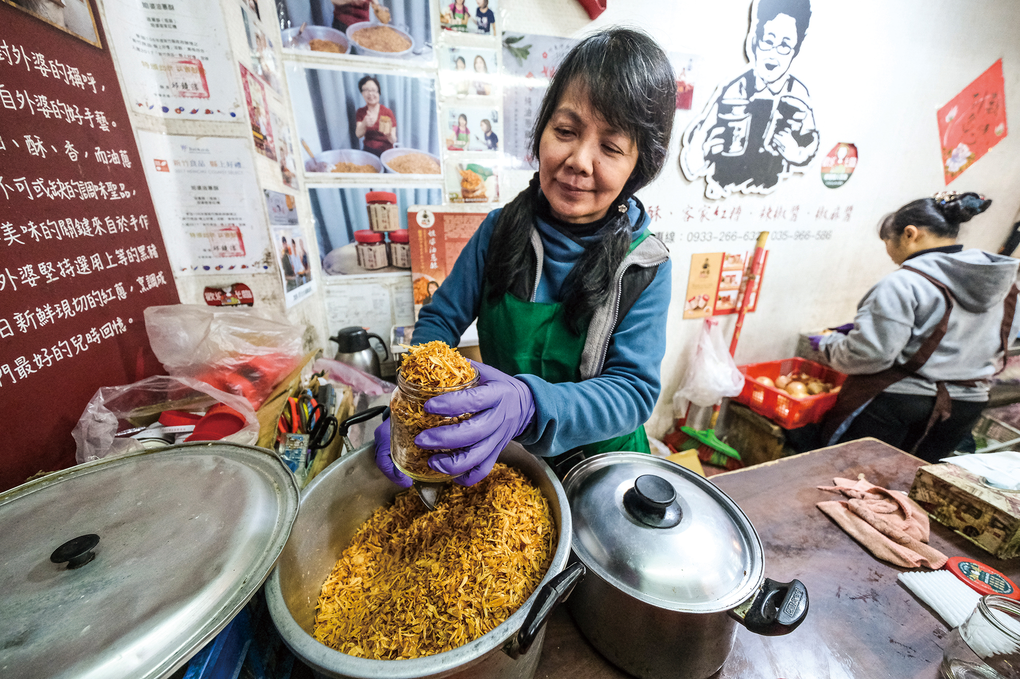 「姐婆油蔥酥」的彭立蓁傳承媽媽的好手藝,手工製作油蔥酥、紅麴醬、福菜、梅乾菜等,為許多餐桌的客家料理畫龍點睛。