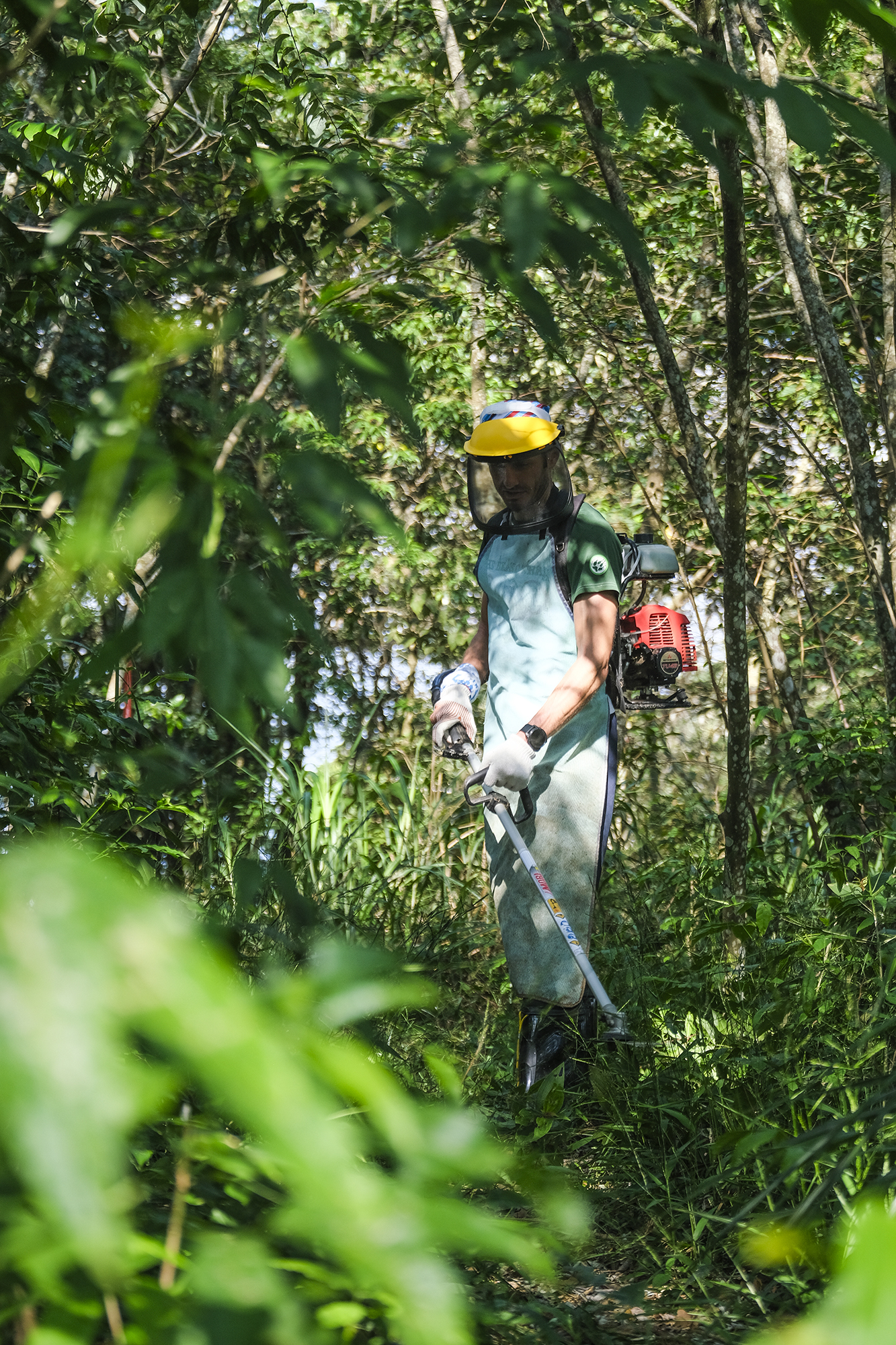 採訪這一天,扛著除草機,邊解說賽道特色,Petr邊細心地清除生長一年、高度快和人一樣高的植被。