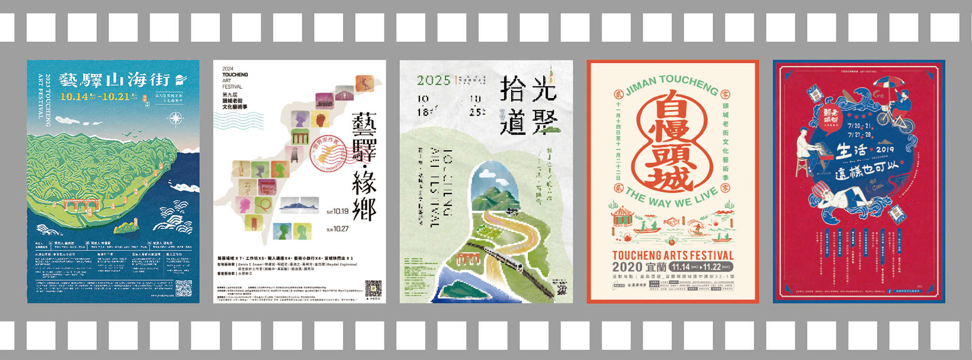 頭城老街藝術季歷年海報(彭仁鴻提供)。