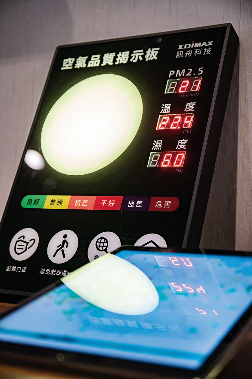 訊舟科技的空氣品質揭示板,提醒民眾依空氣狀況調整活動。