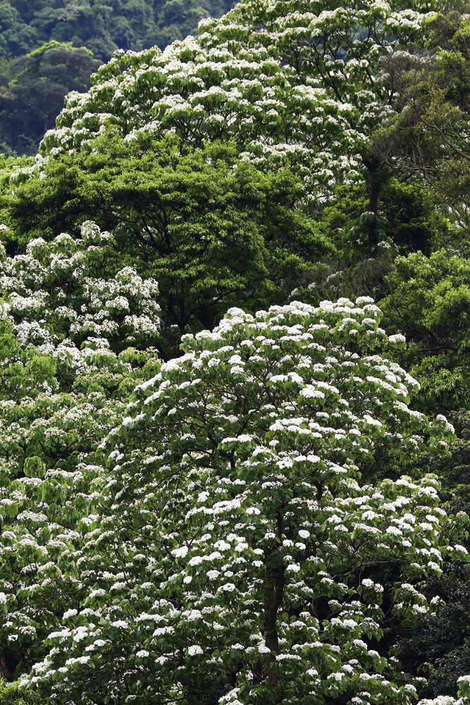 根據中興大學森林學系森林植物分類暨生態研究室教授歐辰雄的研究,油桐約在花序抽出的第20天左右開出第一朵花。花期不長,花苞從吐花到展開約36小時,展開後到凋謝約48小時,換句話說,油桐花開後,停留在樹上的時間只有短短2天,很快就落地化作春泥了。