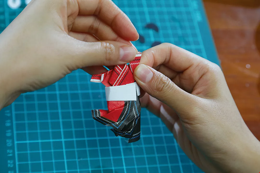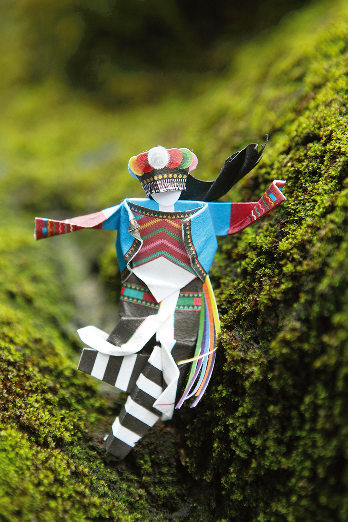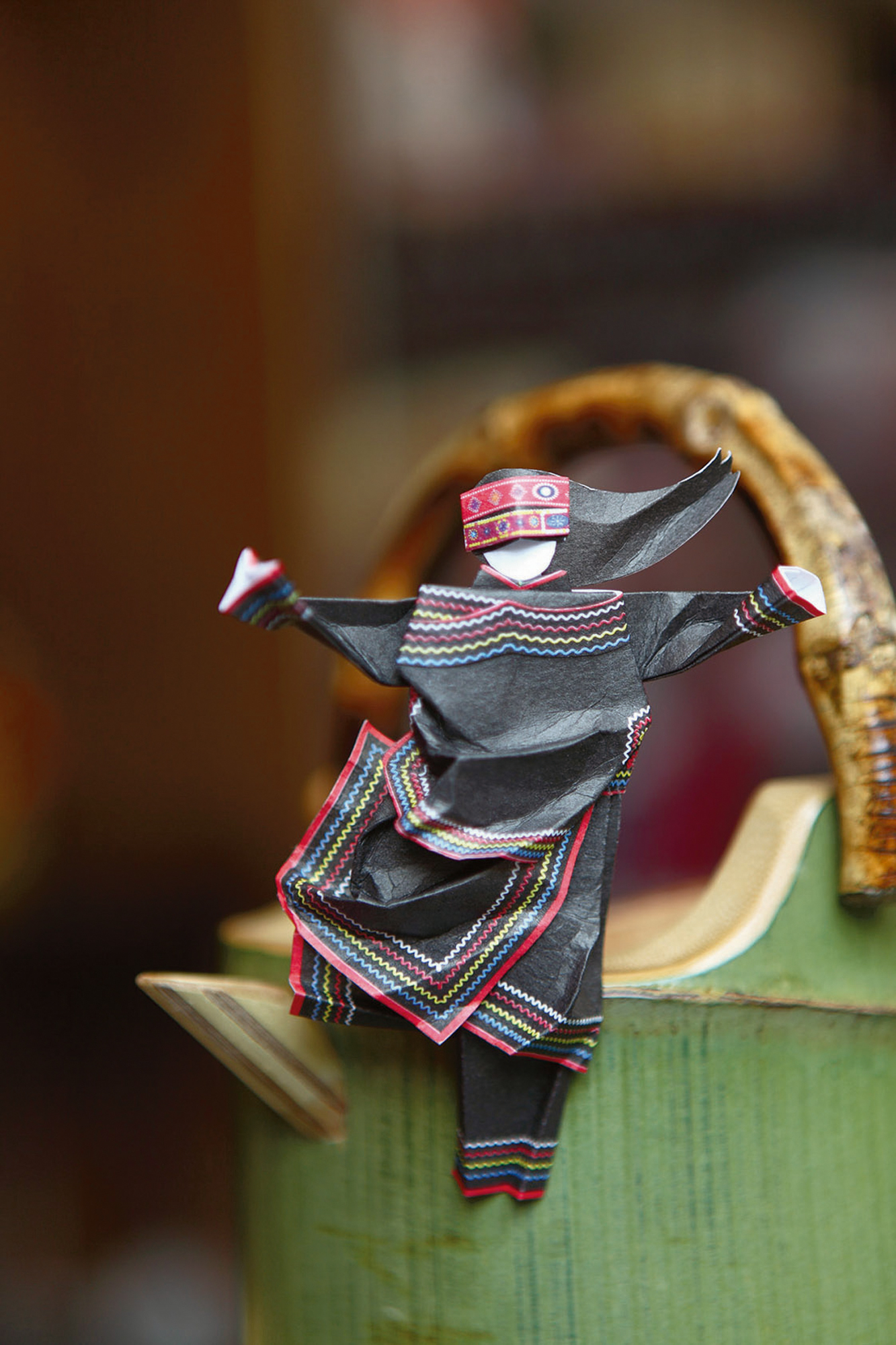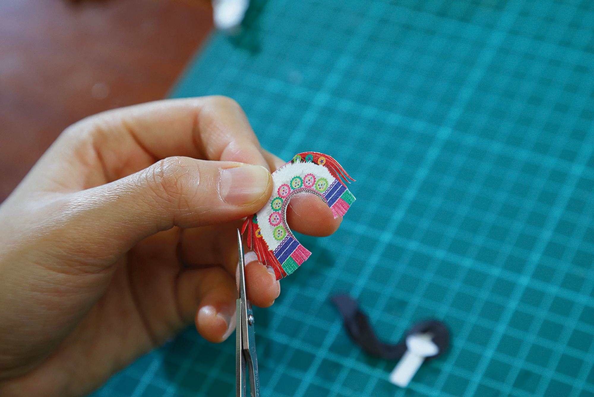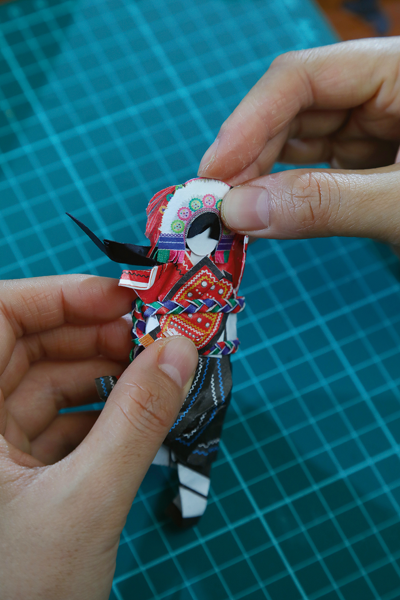 心象精心設計的立體紙藝,先個別製作頭飾和身體,最後再予以結合。(林格立攝)