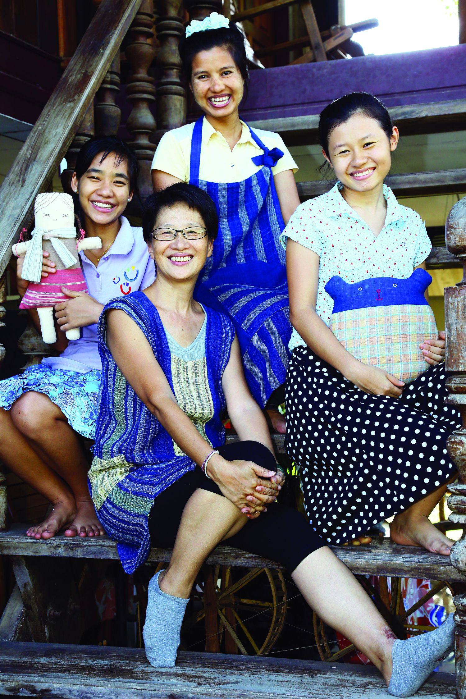 Chimmuwa從最初只有林良恕與她家中克倫管家Naw Naw兩人一手包辦設計、縫製產品,到如今團隊已歷經好幾代。位於林良恕住家旁的工作坊,牆上幾張照片就記錄了彼此走過的歷程。「這是我們的管家、2007年一起工作的夥伴……」,她一一細數照片。不管來自緬甸的移工、或是遠從部落來到城鎮的村民,都彷如林良恕的家人一般。