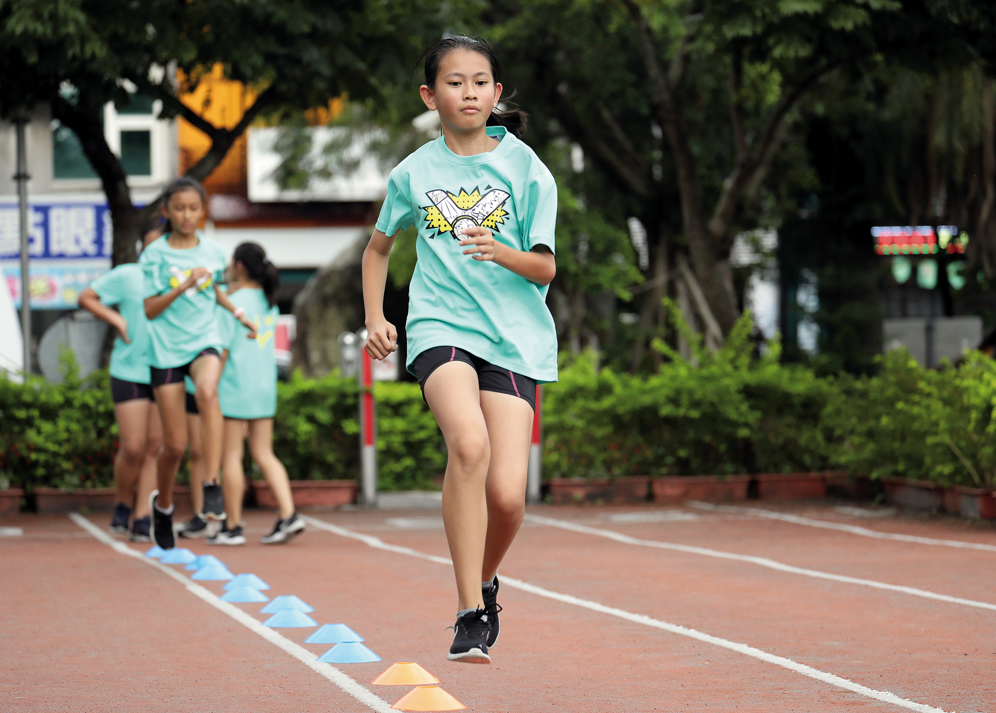 Gong Jheng Elementary took first place in the girls’ 1200-meter relay race at the 2018 Yilan County Elementary and High School Games. This photo shows one of the athletes, fifth-grader Lu Zicen.
