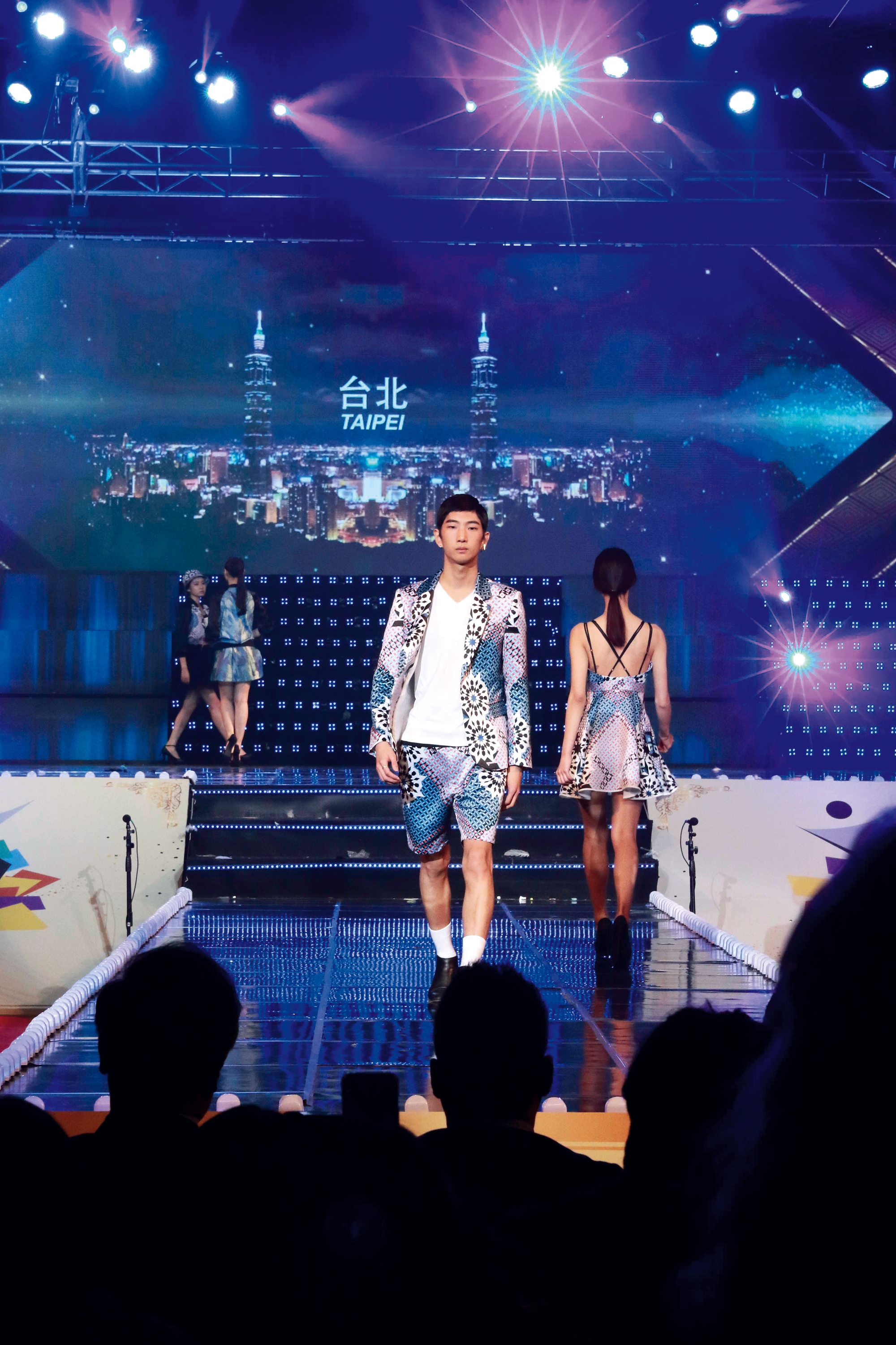 The theme of the 7crash show is “Taipei City Runway.” The background music is Taiwanese-language rap, and images of Taipei’s most famous tourist attractions are being shown on a giant backdrop screen. This is a brand that confidently and proudly declares: We are from Taiwan!