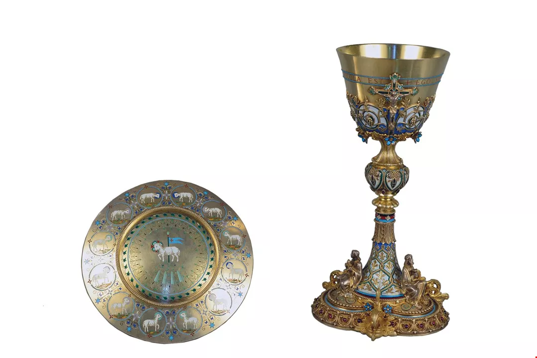 A chalice with paten used by Blessed Pope Pius IX (reign: 1846–1878).