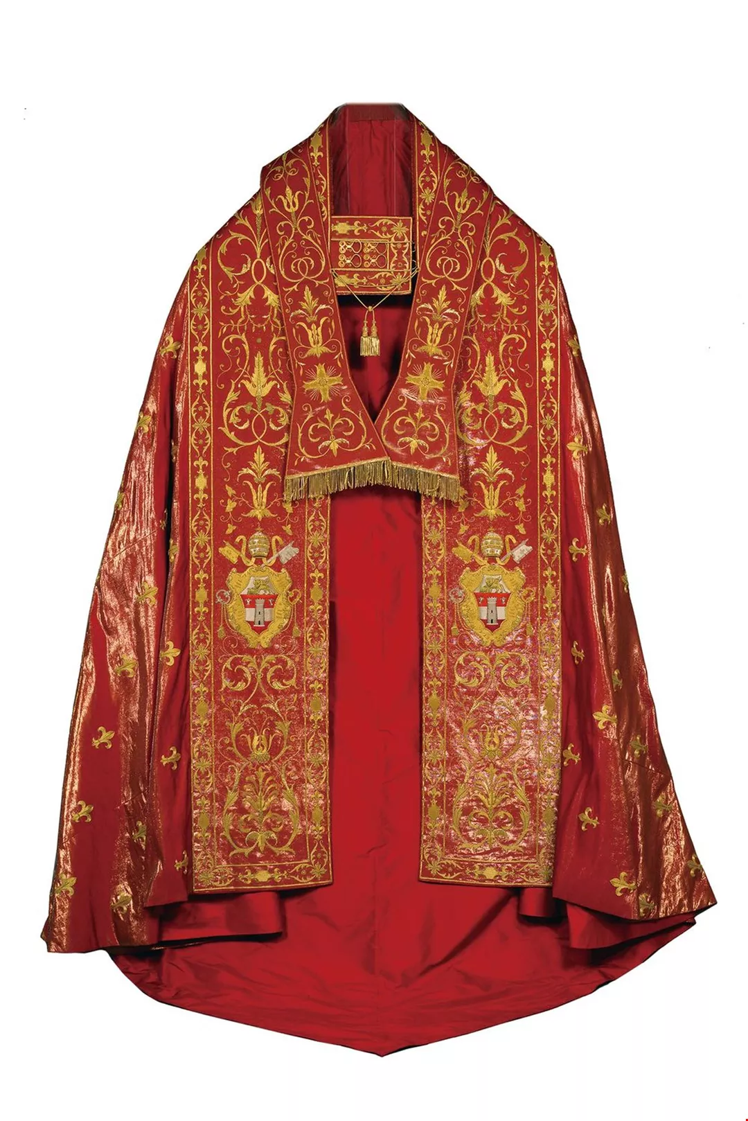 A red mantle with stole used by Saint Pope John XXIII (reign: 1958–1963).