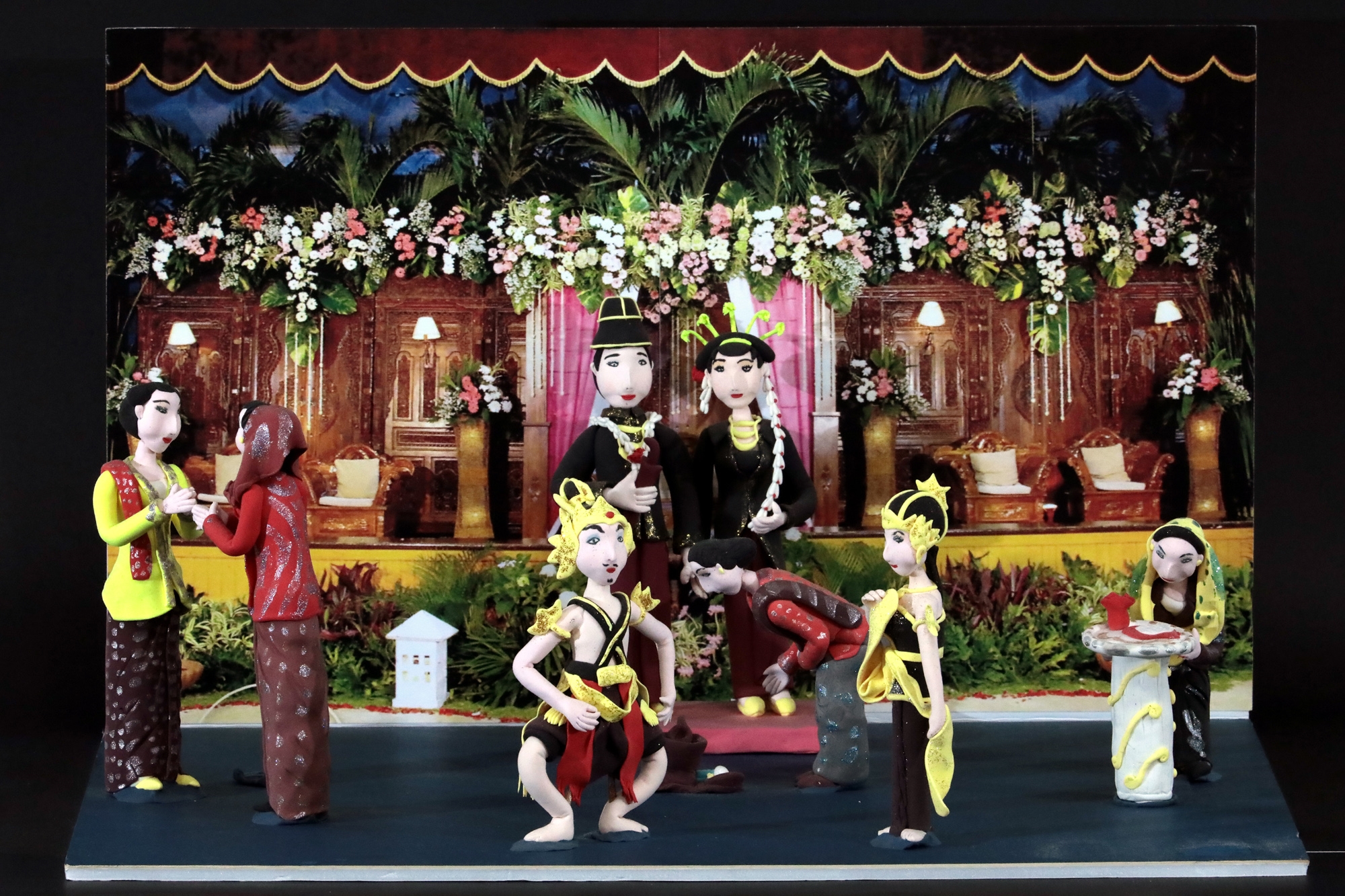 Pindy’s skillful hands have transformed subjects that combine memories of her local region with photos of Indonesia from all over, into dough sculptures. Her creations capture the distinctive essence of her native culture. The subject matter for Pindy’s creations is replenished from the deep wells of diverse cultural content that originates in the myriad islands of the Indonesian archipelago.