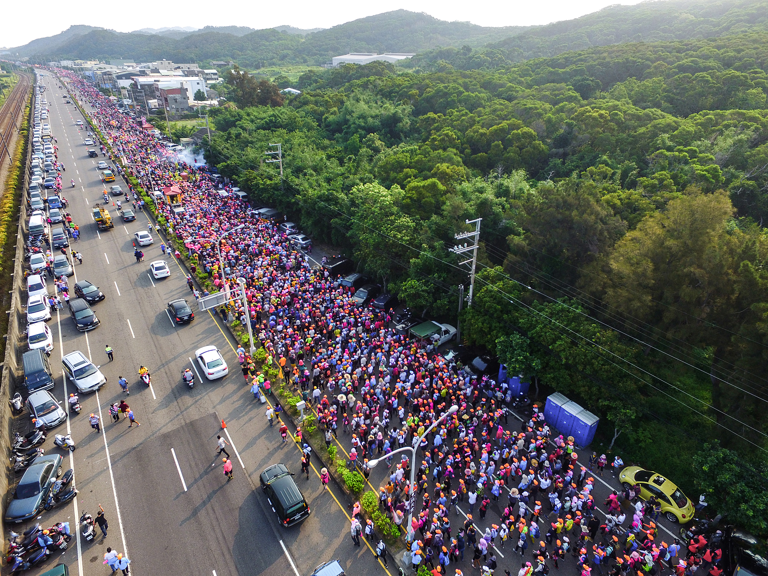 Mazu worship in Taiwan transcends ethnicity and locale. Likewise, her pilgrimage routes extend from the seashores to the mountains. The photo shows the procession of the Mazu deity from the Cyuanji Temple in Jinguashi touring her realm. (photo by Kent Chuang)