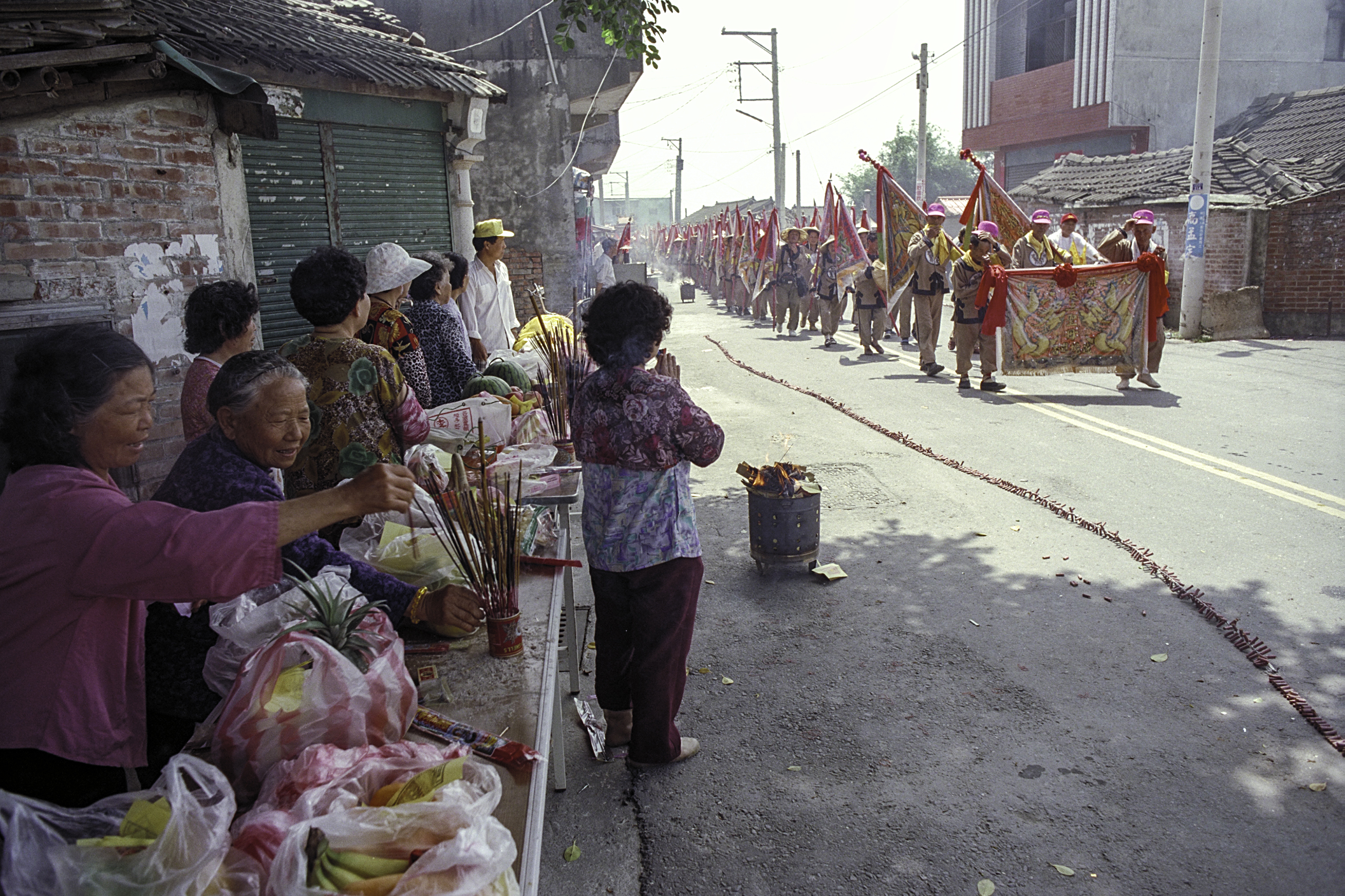 Lu Mei-huan points out that the activities termed jinxiang (“presenting incense”) and raojing (“touring the realm”)—both frequently translated as “pilgrimage”—are religious practices that traditionally held quite distinct meanings: In the past jinxiang marches involved devotees from a local temple proceeding to their deity’s “ancestral temple” or another temple of historical importance, where they would present burning incense as an act of respect to a senior deity. Raojing pilgrimages, on the other hand, conveyed the idea of important deities making tours of the regions over which they held authority. But today the meanings of these two religious observances have blurred. Temples no longer stress their relative ranks, taking instead a more egalitarian approach that emphasizes broad participation and friendship.