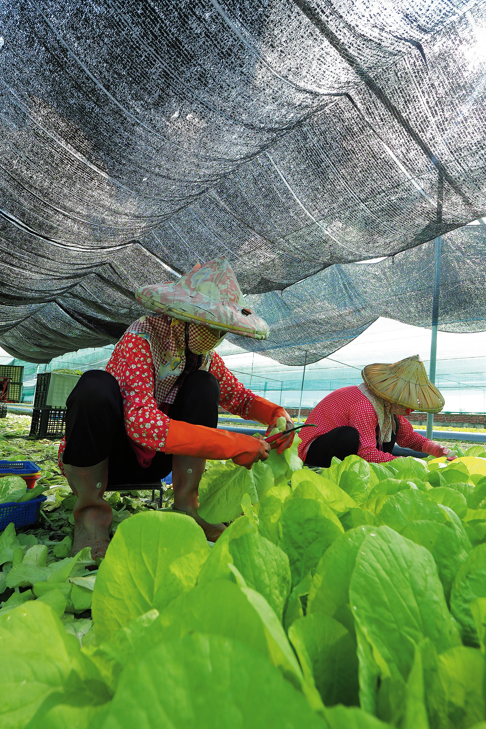 Xiluo Township in Yunlin County is one of Taiwan’s most important vegetable growing areas, relying mainly on leafy vegetables for income. When you come into the fields you can see net greenhouses covered in green plastic mesh, as well as people doing the endless workaday chores of farming: weeding, fertilizing, and harvesting. Even before sunrise, small farmers are already hard at work inside the greenhouses. They want to send fresh vegetables to the nearby Xiluo fruit and vegetable market as early as possible.